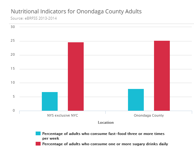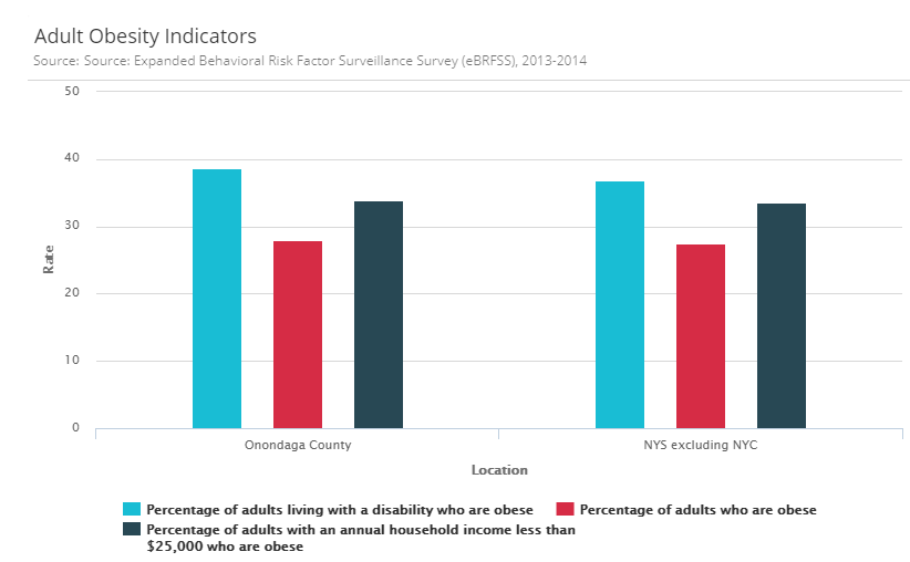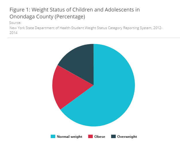 In New York State, 24.5 percent of adults are obese, 36 percent are overweight, and 32 percent of school-age students in the rest of the state are overweight or obese.