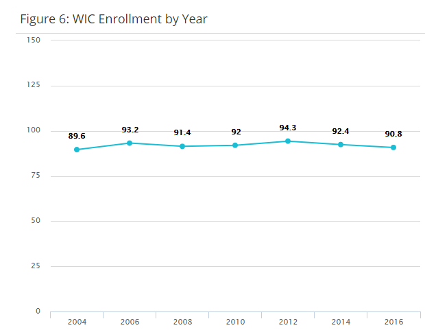 Notes: Figure 6: The WIC program improves the level of nutrition of Pregnant Moms and babies. High levels of Syracuse Healthy Families participants are enrolled in the WIC program, often assisted by program staff.